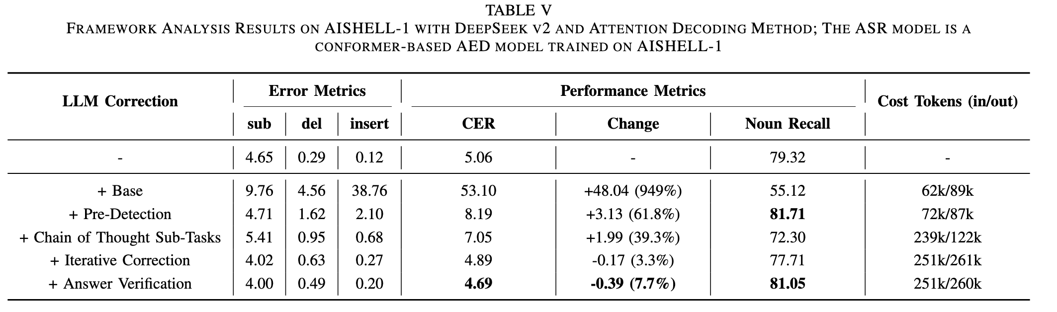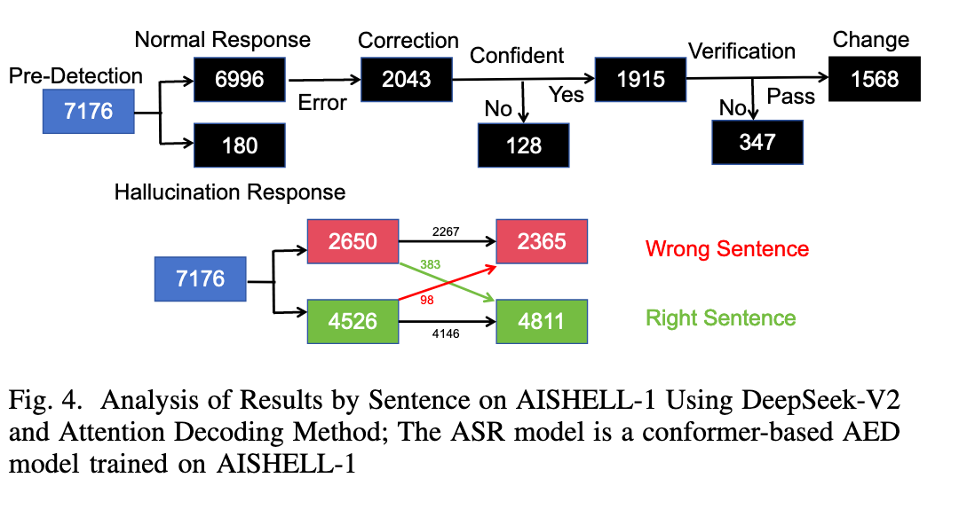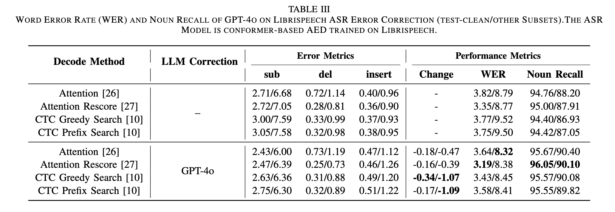 Methods:: Conformer-based AED ASR + GPT-4o/DeepSeek-V2, AISHELL-1/2 + LibriSpeech ๋ฒค์น๋งํฌ