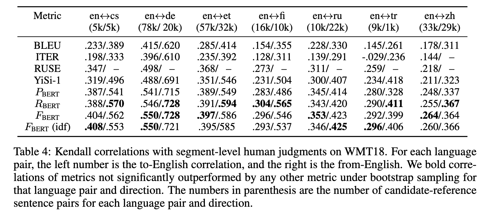 ํต์ฌ ์ ์: pretrained BERT contextual embedding ๊ธฐ๋ฐ์ text generation ์๋ ํ๊ฐ ๋ฉํธ๋ฆญ