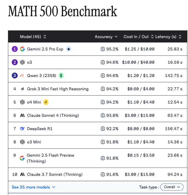 - ๋ฐฉ๋ฒ: MATH ๋ฒค์น๋งํฌ(12,500๊ฐ)์์ 500๊ฐ๋ฅผ ์ธตํ ์ถ์ถ(stratified sampling)